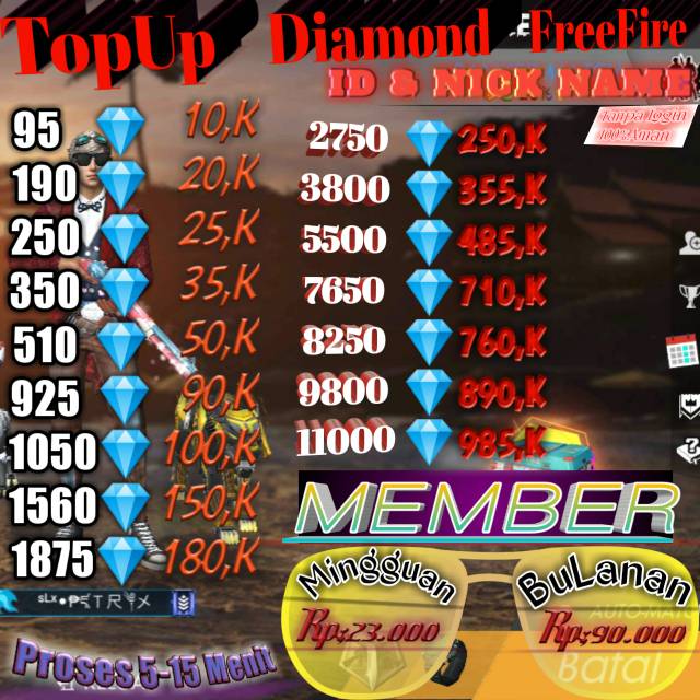Codashop cara paling mudah top up diamond ff di indonesia hanya butuh beberapa detik saja untuk membeli diamonds free fire. Untuk membeli diamond ff di lazada kamu hanya perlu mengetikkan kata free fire tanpa menggunakan tanda petik di dalam kolom search maka akan keluar beberapa pilihan paket diamond yang bisa kamu beli. Beli member mingguan garena free fire dengan harga rp 28 500 dari aanramadhanstore.